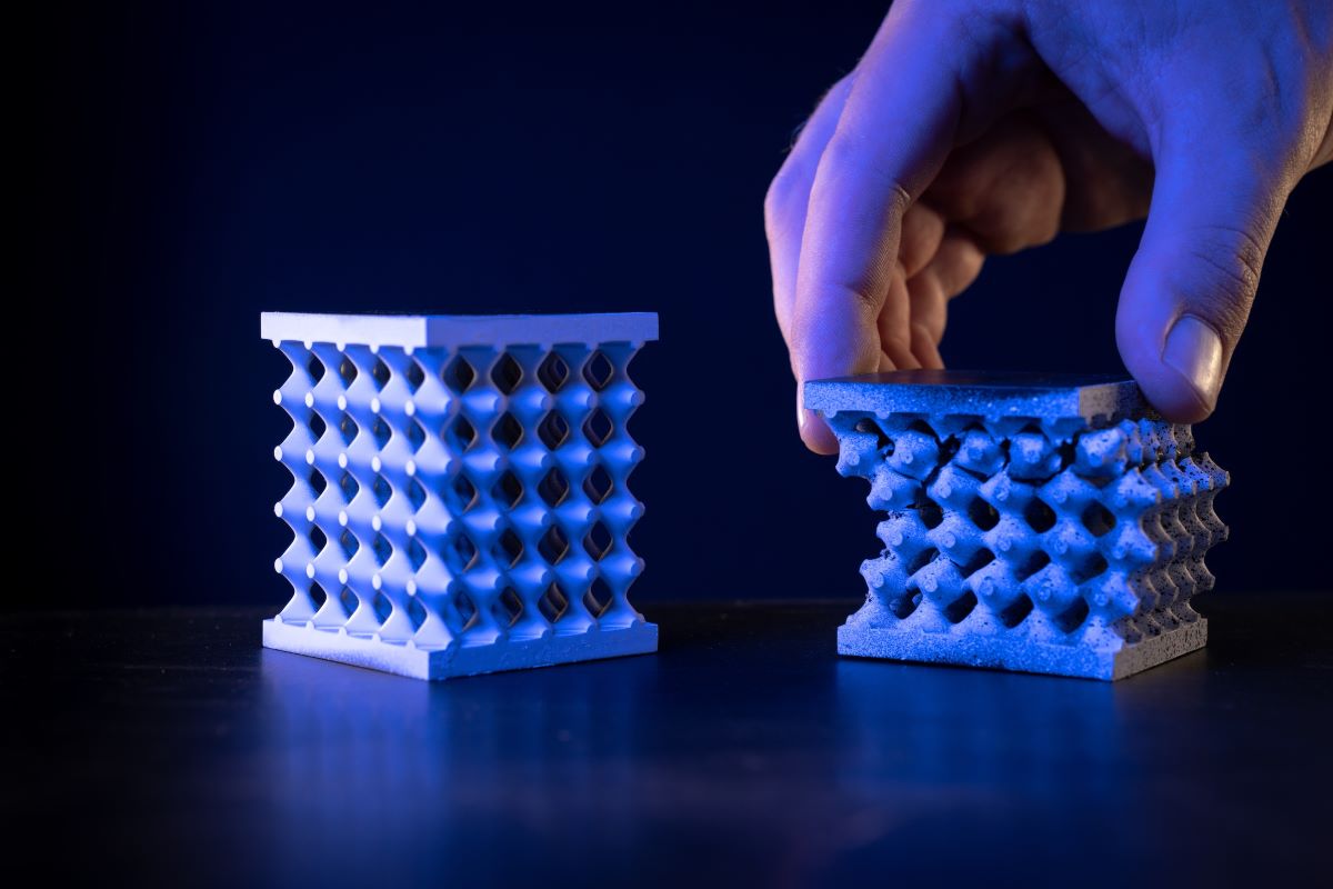 Esta estructura se puede imprimir en 3D a partir de resinas líquidas y tiene una capacidad de 30 000 veces su propio peso de 0,15 libras (68 g). Un marco recién creado sería hasta un 60 por ciento más ligero.